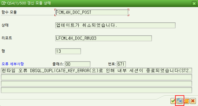2) 오류 항목을 더블클릭하여 소스보기(ABAP 편집기)를 누르면 오류가 발생한 Table의 확인이 가능합니다.