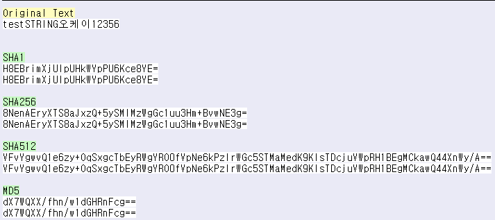 문자열을 MD5, SHA1, SHA256, SHA512 로 해싱