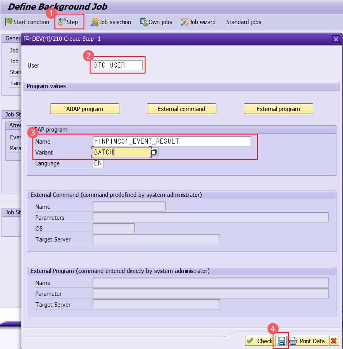 - ABAP Program : 실행할 프로그램과 Variant 입력