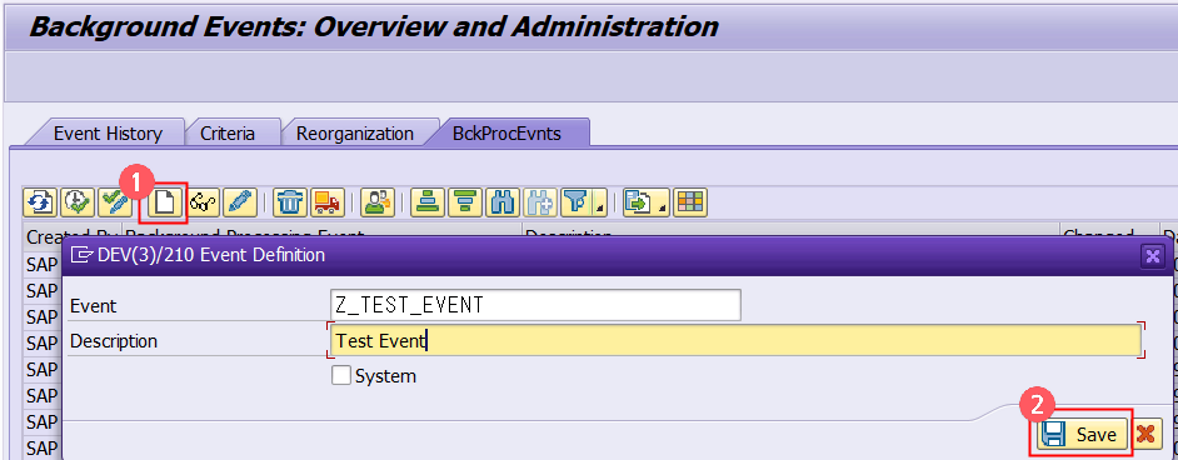 PARAMETERS: P_EVENT TYPE TBTCO-EVENTID OBLIGATORY DEFAULT 'Z_TEST_EVENT',