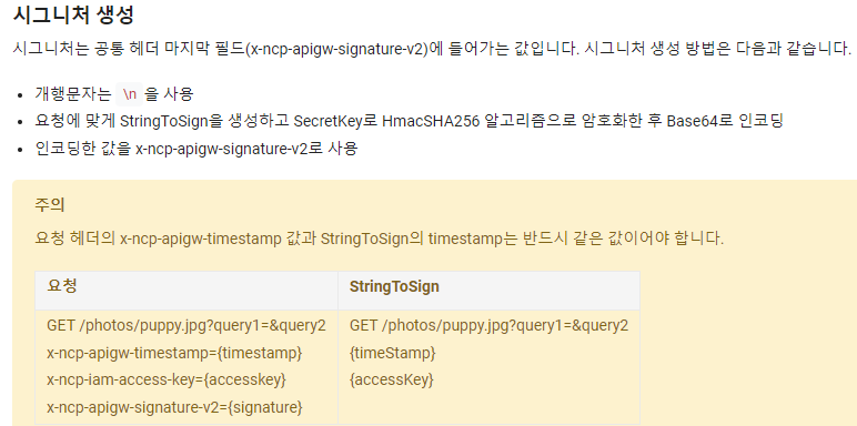 #1. 네이버클라우드(Ncloud) API 호출시 헤더형식 및 시그니처 생성 가이드